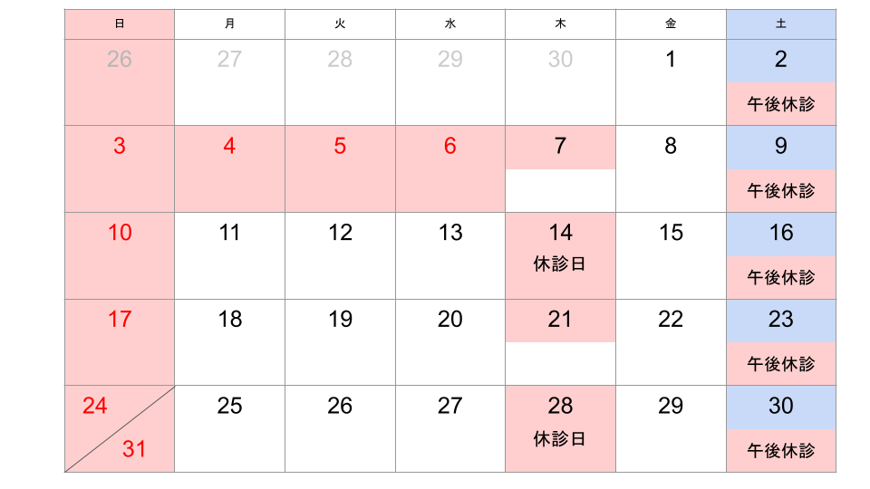 ※第1,3木曜日は午後のみ診療、第2,4木曜日は休診日となっていますのでご注意ください。