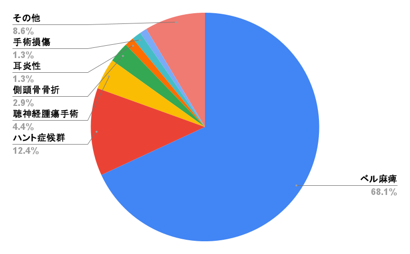 事故・外傷、手術後の神経損傷、中耳・耳下腺の炎症や腫瘍などによる麻痺もあります。