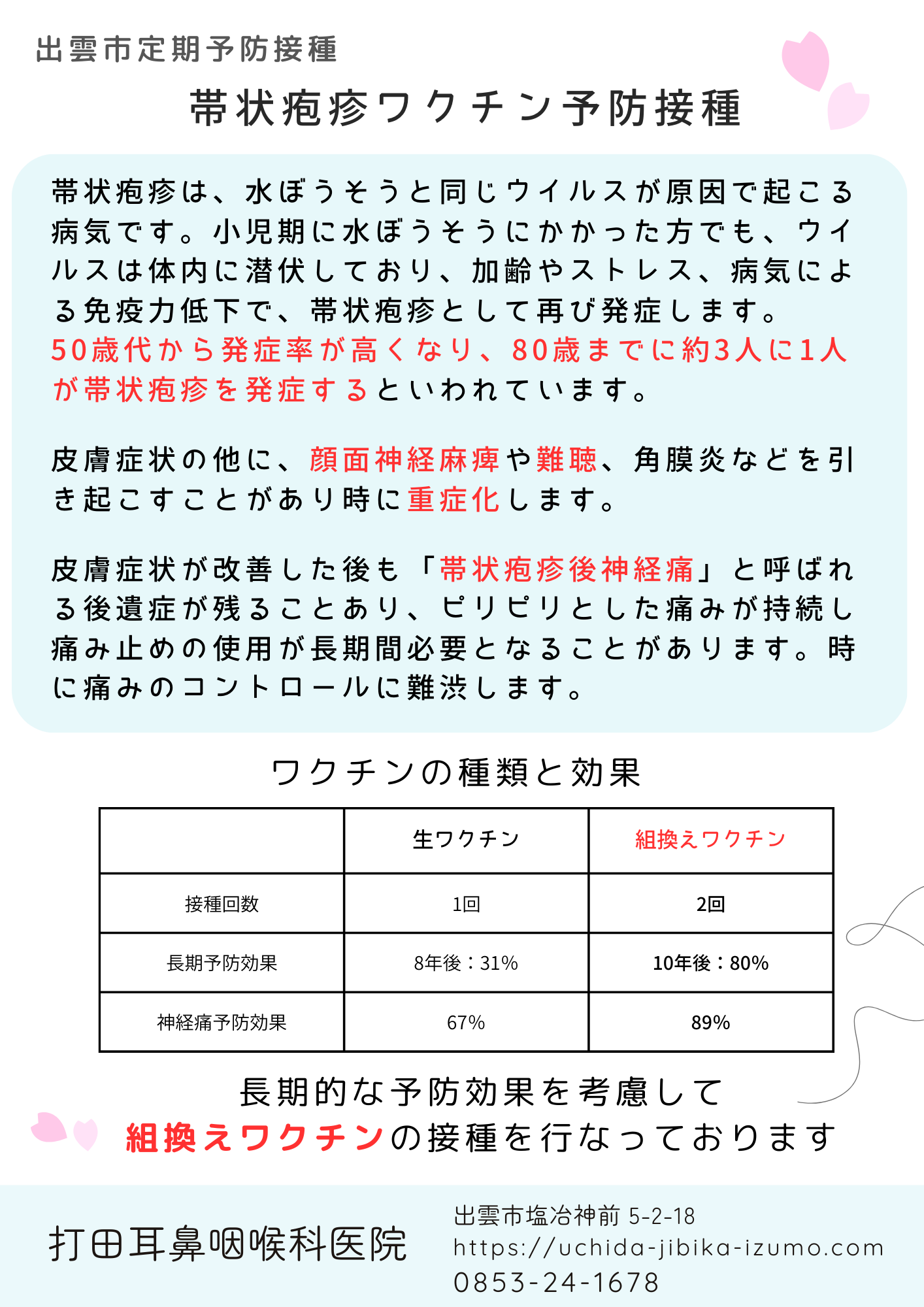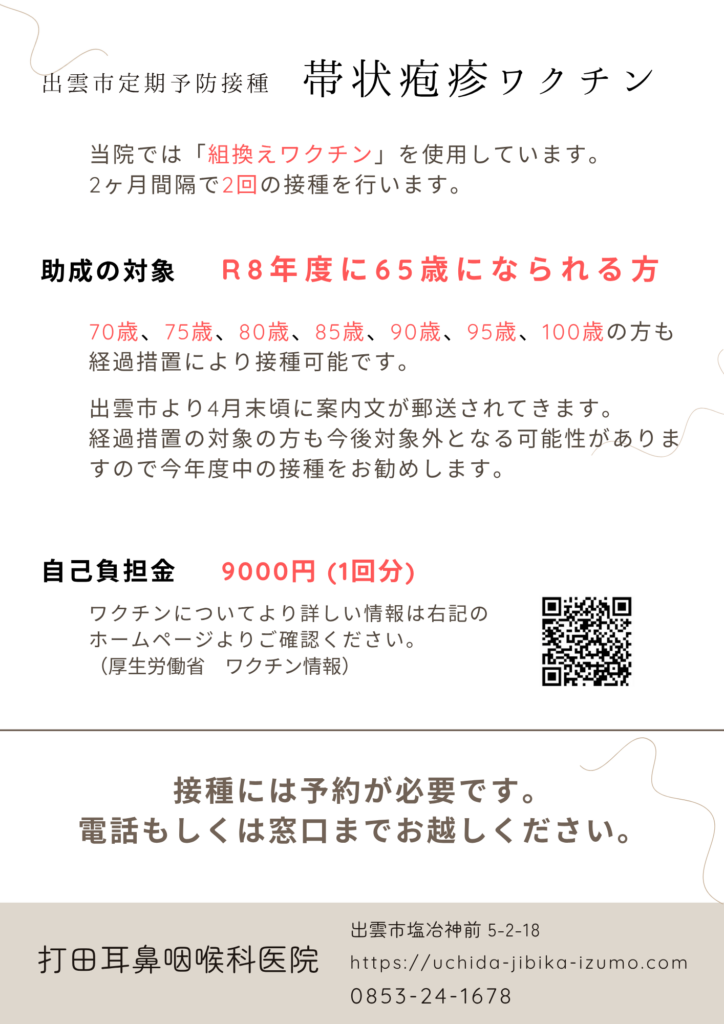 令和8年度も65歳の方への帯状疱疹ワクチン接種が、予防接種法に基づく定期接種の対象となっています。